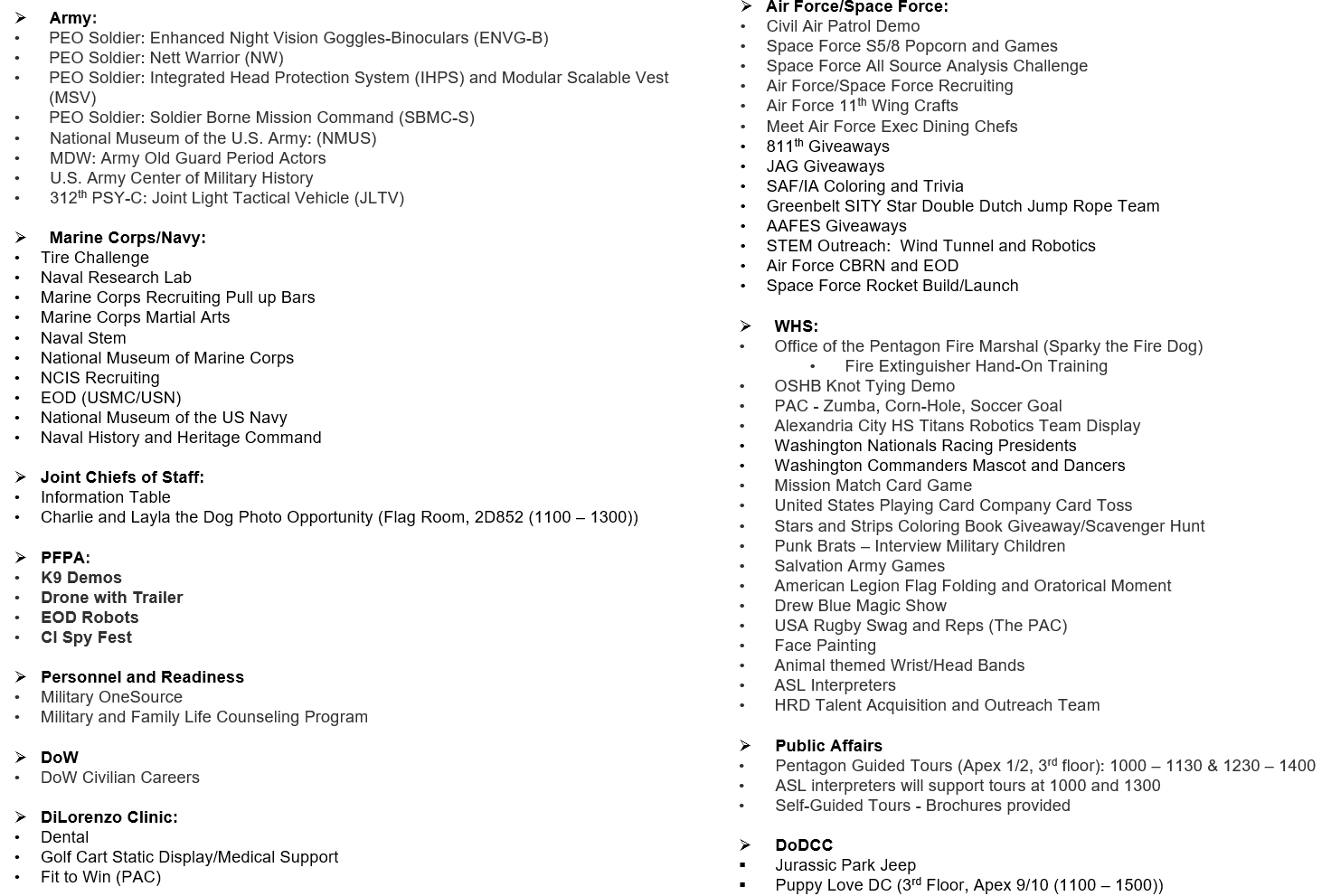 · PFPA will enforce normal procedures, so please plan accordingly to avoid violations.