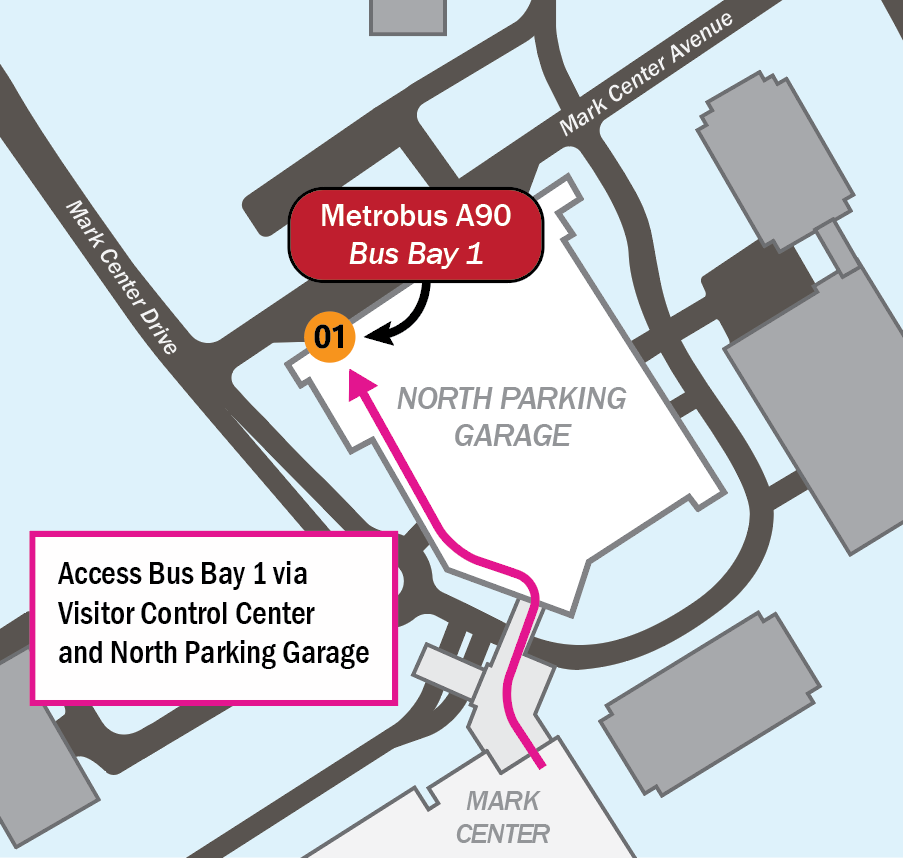Mark Center to/from the Pentagon: Use Metrobus A90 from Bus Bay 1 at Mark Center Station to Bus Bay U6 at the PTC. Metrobus A90 operates every 10-15 minutes from 5:40 a.m. to 6:58 p.m. BYCTWD attendees will be able to ride for free when accompanied by DoW personnel with a valid CAC/PFAC.