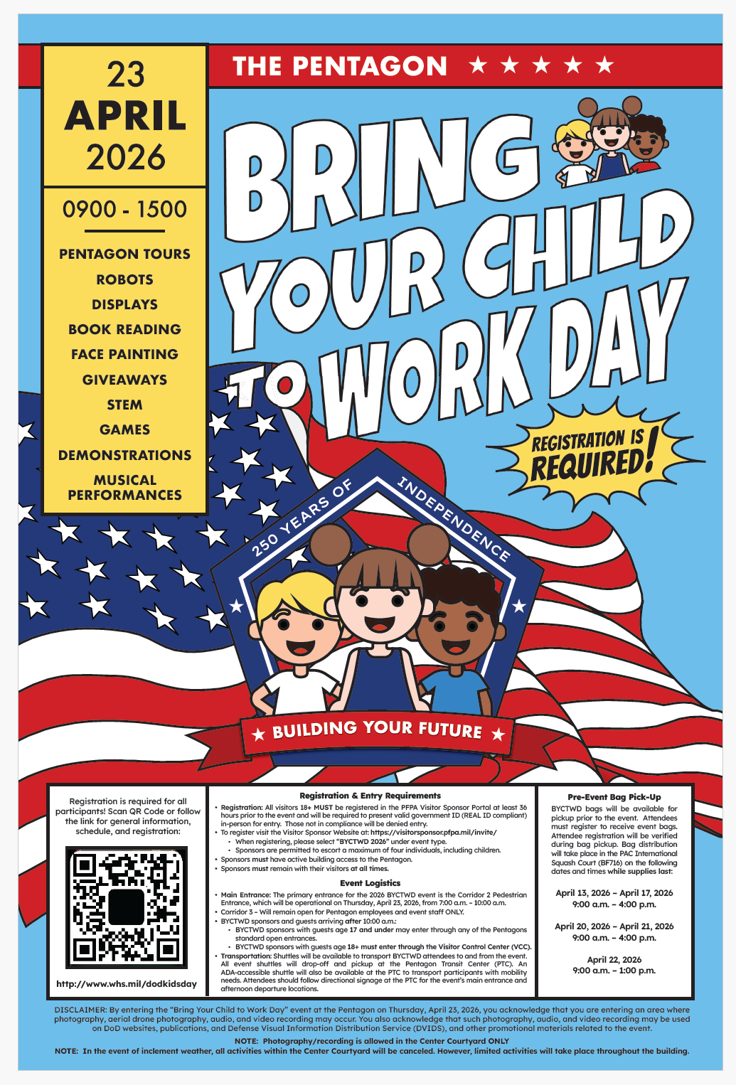 Shuttles will be available to transport BYCTWD attendees to and from the event. All event shuttles will drop-off and pickup at the Pentagon Transit Center (PTC). An ADA-accessible shuttle will also be available at the PTC to transport participants with mobility needs. Attendees should follow directional signage at the PTC for the event’s main entrance and afternoon departure locations.